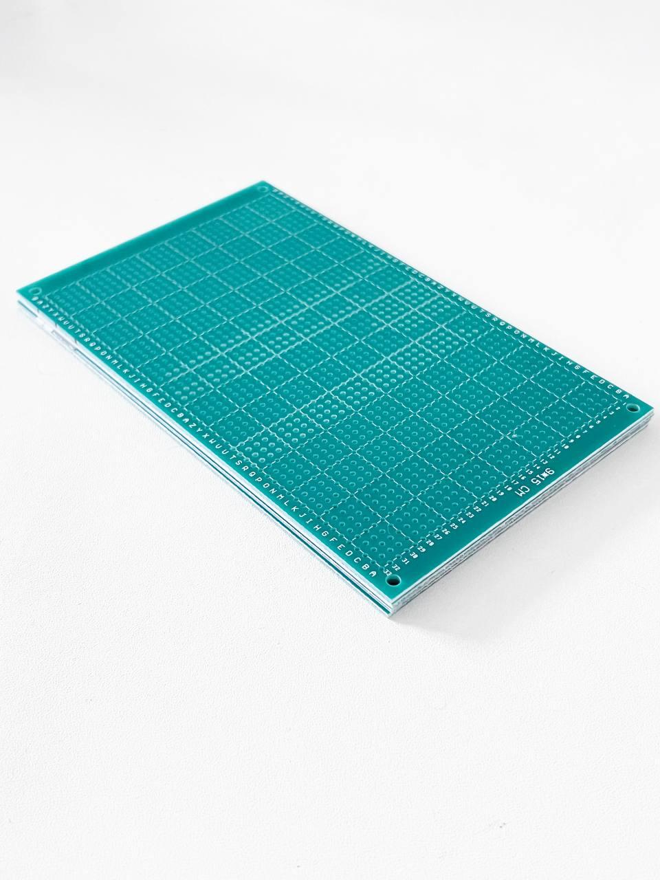 Формат: 9×15 см (90×150 мм) Металлизированные сквозные отверстия — для надёжной пайки и прочных соединений Дополнительные контактные площадки — для удобства разводки цепей Универсальный шаг отверстий — 2.54 мм, совместим с большинством DIP-компонентов и модулей Материал платы: текстолит Толщина: 1.5 мм Цвет: зелёный