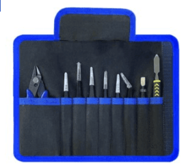 Название товара: Набор инструментов для пайки и ремонта Описание: Этот комплект идеально подойдет для профессионалов и любителей, занимающихся пайкой и ремонтом электроники. В набор входит качественный тканевый чехол, который обеспечивает надежную защиту и удобство хранения. Характеристики товара: Вид заводской упаковки: Упаковано в заводской упаковке Тип упаковки: Чехол тканевый Количество предметов в наборе: 9 штук Материал: Нержавеющая сталь Назначение: Для пайки Особенности: Диамагнетизм, антистатические свойства Состав набора: Бокорезы длиной 135 мм – 1 шт. Лопатка длиной 150 мм – 1 шт. Пинцеты ESD11, ESD12, ESD13, ESD14, ESD15, ESD16, ESD17, ESD34A-SA Тип продукции: Товары для ремонта или строительства Вид товара: Инструменты для ремонта и строительства Вид инструментов: Ручной инструмент Виды инструментов: Наборы строительных инструментов